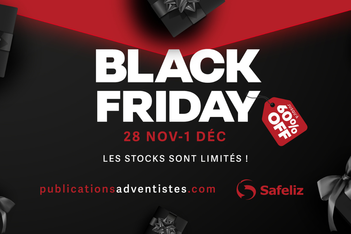 Avec Safeliz, le Black Friday ce n’est pas seulement des réductions, il s'agit aussi et surtout d'investir dans la croissance, la connaissance et la foi. Chaque livre, chaque Bible et chaque jeu est conçu pour inspirer et transformer des vies. Du 28 novembre au 1er décembre, ne manquez pas les offres spéciales sur publicationsadventistes.com