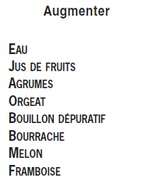 • Abondante en liquides pour remplacer l’eau perdue à cause de l’augmentation de la température et éviter la tendance à la déshydratation.
