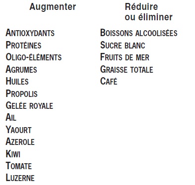 La consommation des aliments recommandés ci-après contribue spécialement à ce que ce système de surveillance et de défense complexe fonctionne correctement.