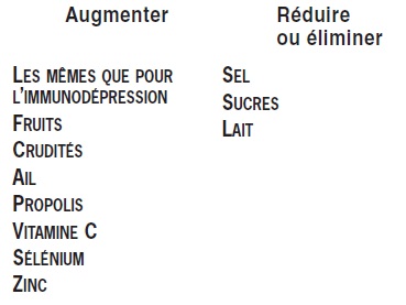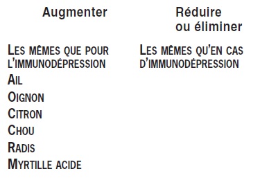 En cas d’infection, il faut également prendre en compte les aliments recommandés et déconseillés pour l’immunodépression et la fièvre.